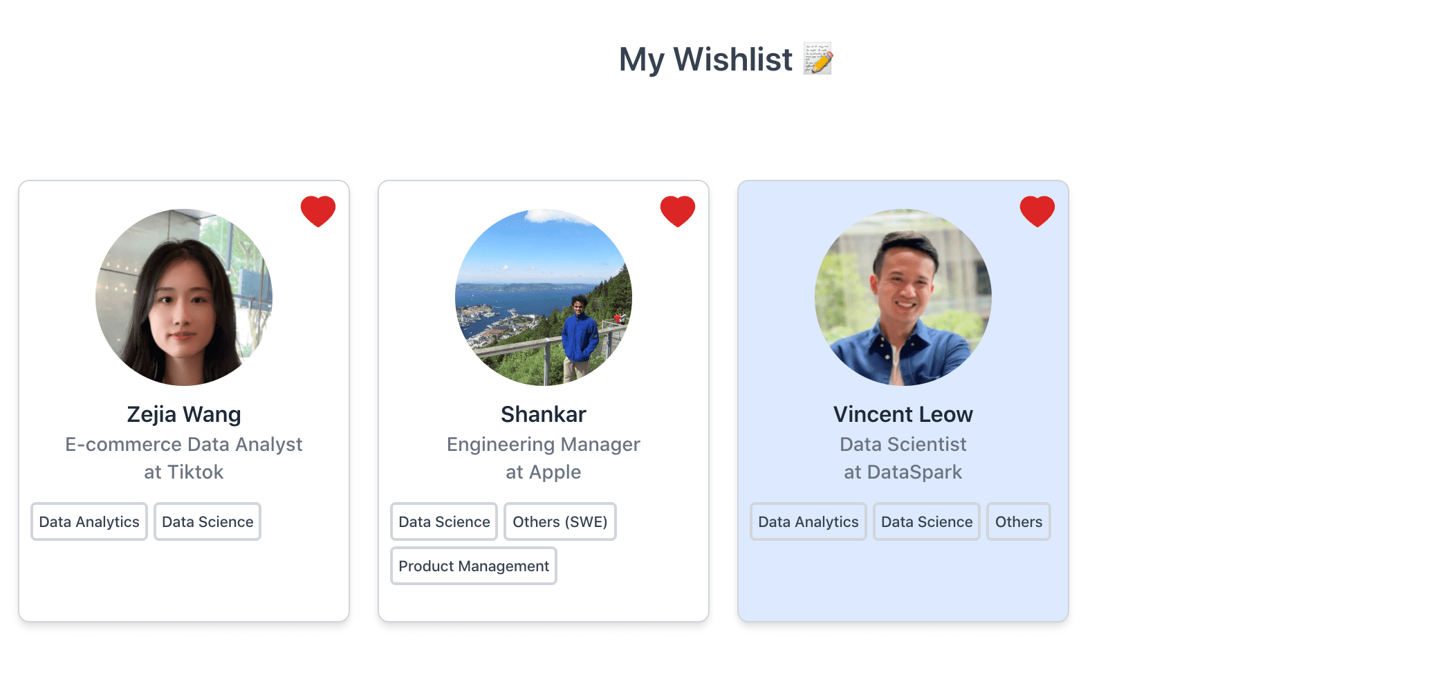 User’s then can find the mentors on the wishlist page