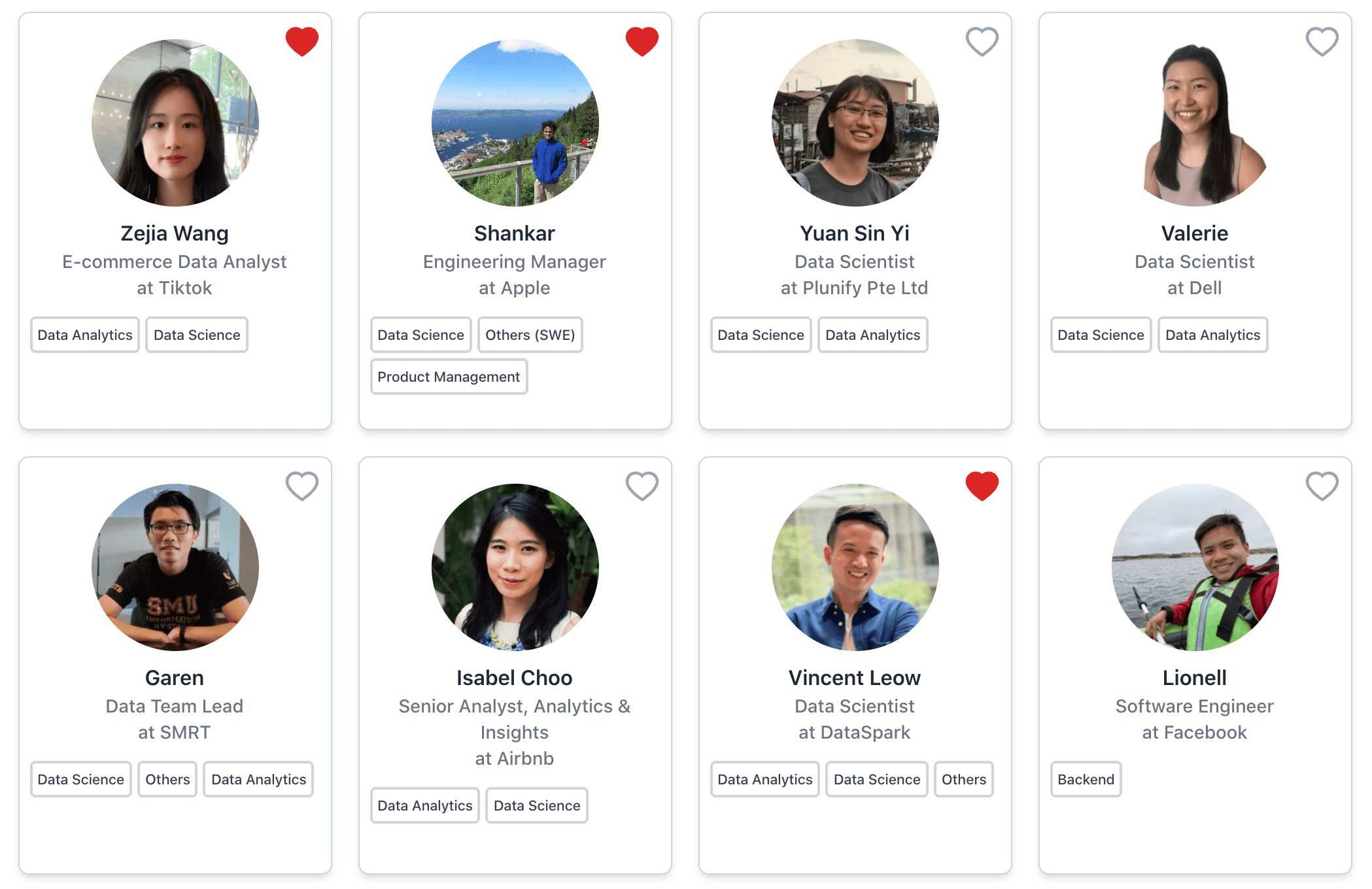 Each mentor card will have a heart shape, which user’s can select